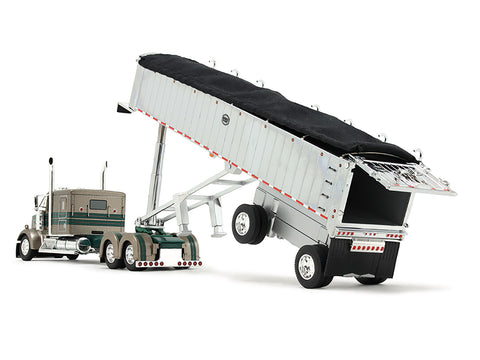Kenworth W900L with 60" Flat Top Sleeper and MAC Coal End Dump Trailer "D&D Hauling & Excavating" Tan Metallic with Green Stripes 1/64 Diecast Model by DCP/First Gear