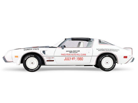 1980 Pontiac Firebird Trans Am T/A "Official Pace Car 58th Annual Pikes Peak Auto Hill Climb" White with Gray Top and Hood Graphics with White Interior 1/24 Diecast Model Car by Greenlight